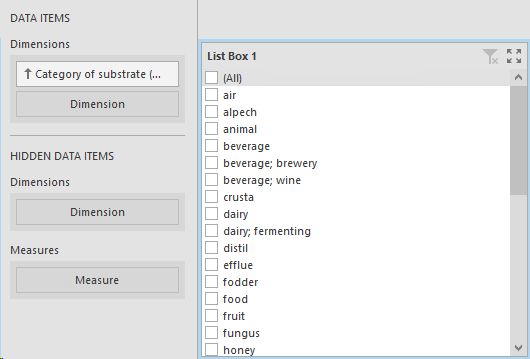 The List Box is a filter element that allows users to select one or more values from a vertical list to dynamically filter other dashboard items.