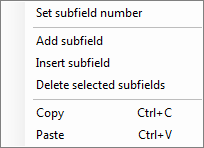 For multiple states fields such as A, C, M, T and V fields, the number of states or subfields must be defined and they have to be labeled.Right-click to see the following options and to create the subfields: