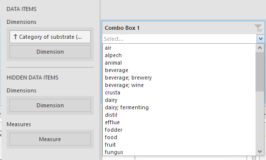 Insert the wanted item from the ribbon and drag the fields to the Data items section.