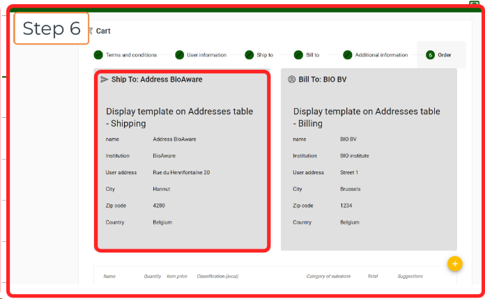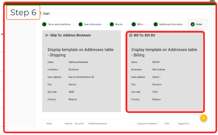 Bill display template for cart Select the display template which contains the fields for billing information.