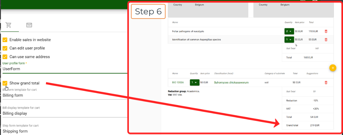 Show grand total The total price, of all ordered items in the cart, will be displayed.